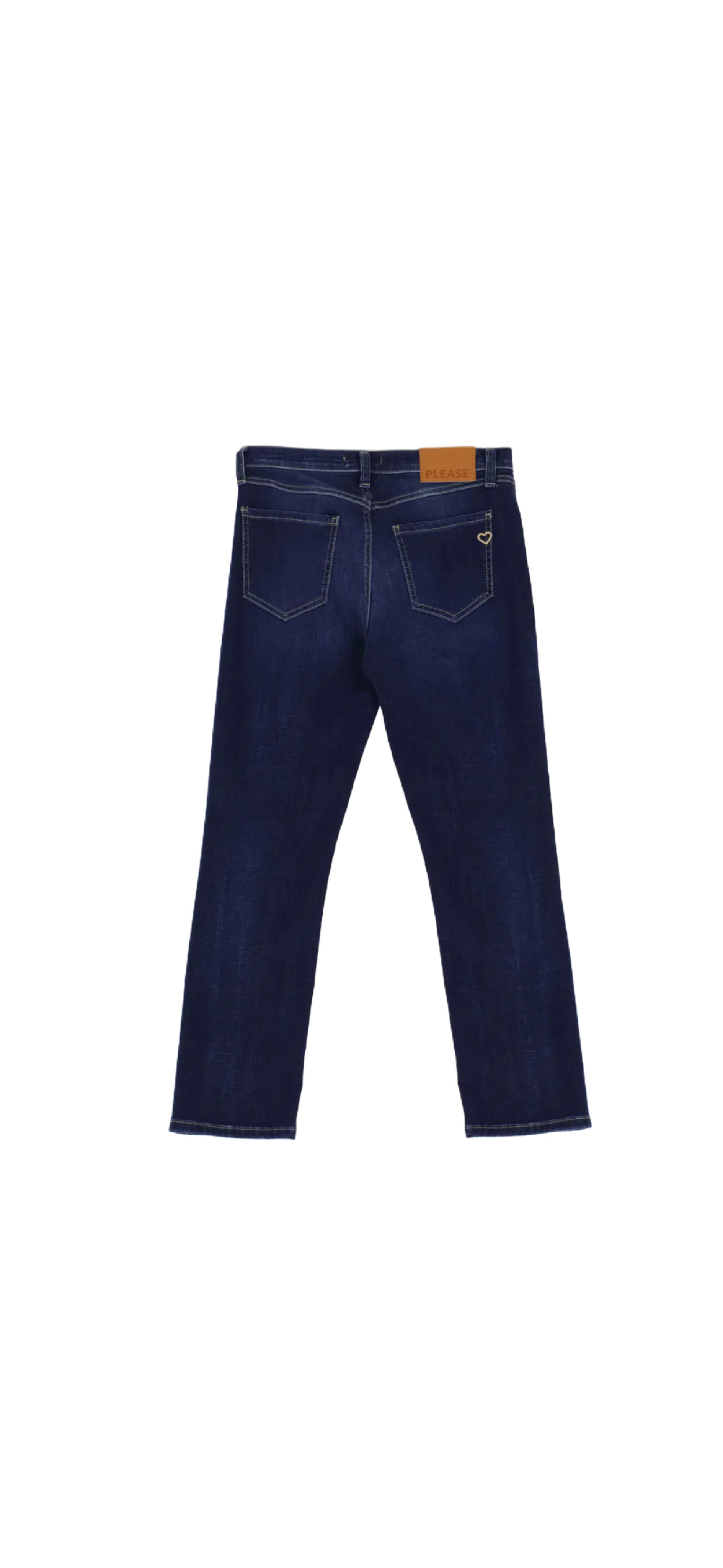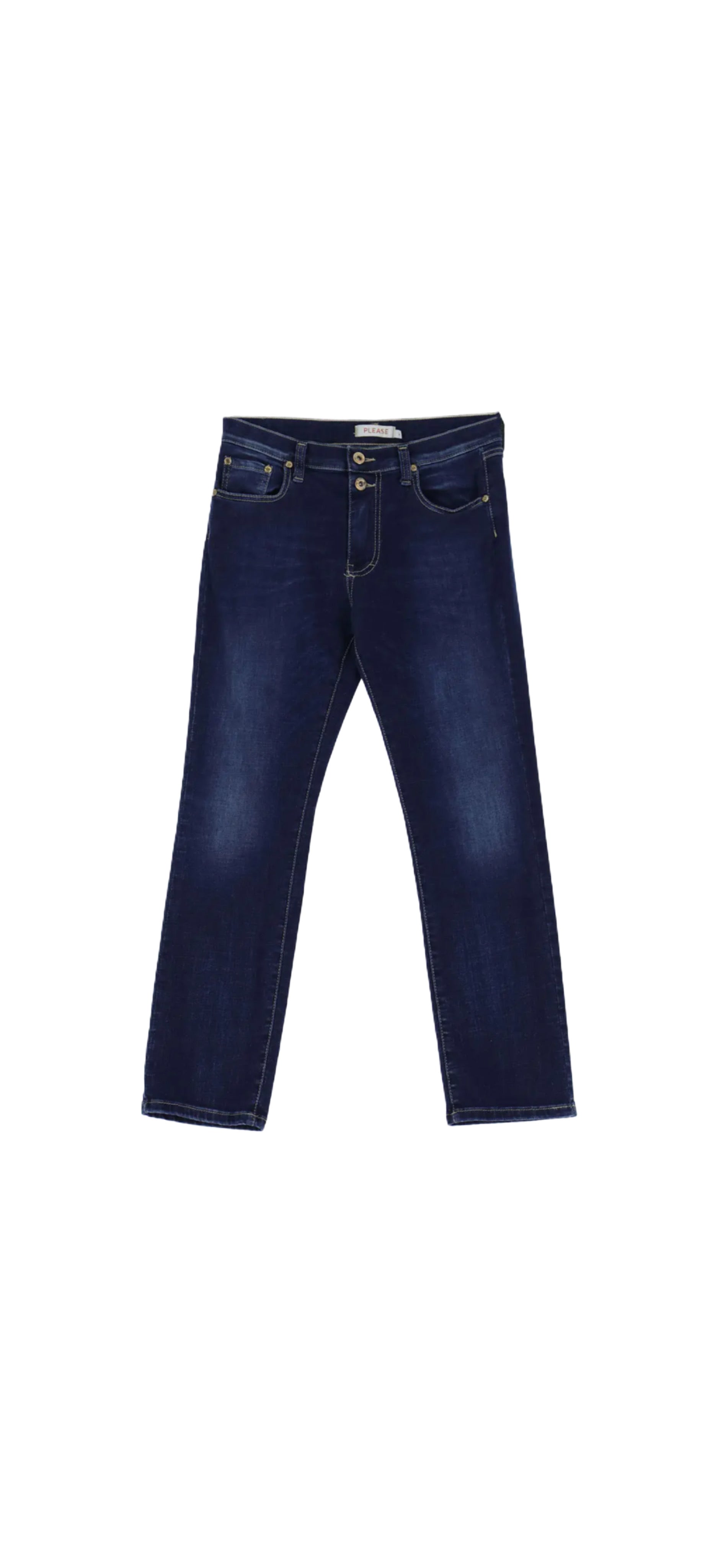 5-lommers jeans med mid-waist. 2 synlige knapper i front. Jeansen har en rett, relativt ettersittende fasong og god elastikk. Ankellang.