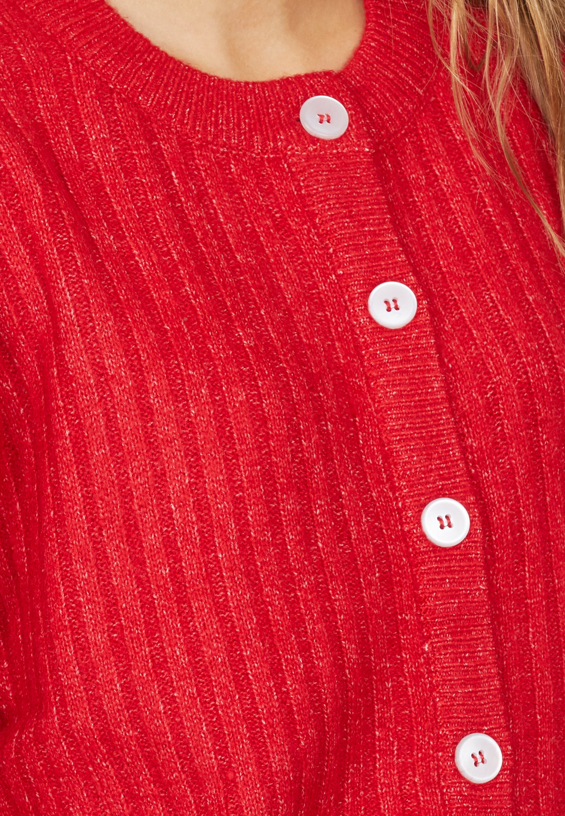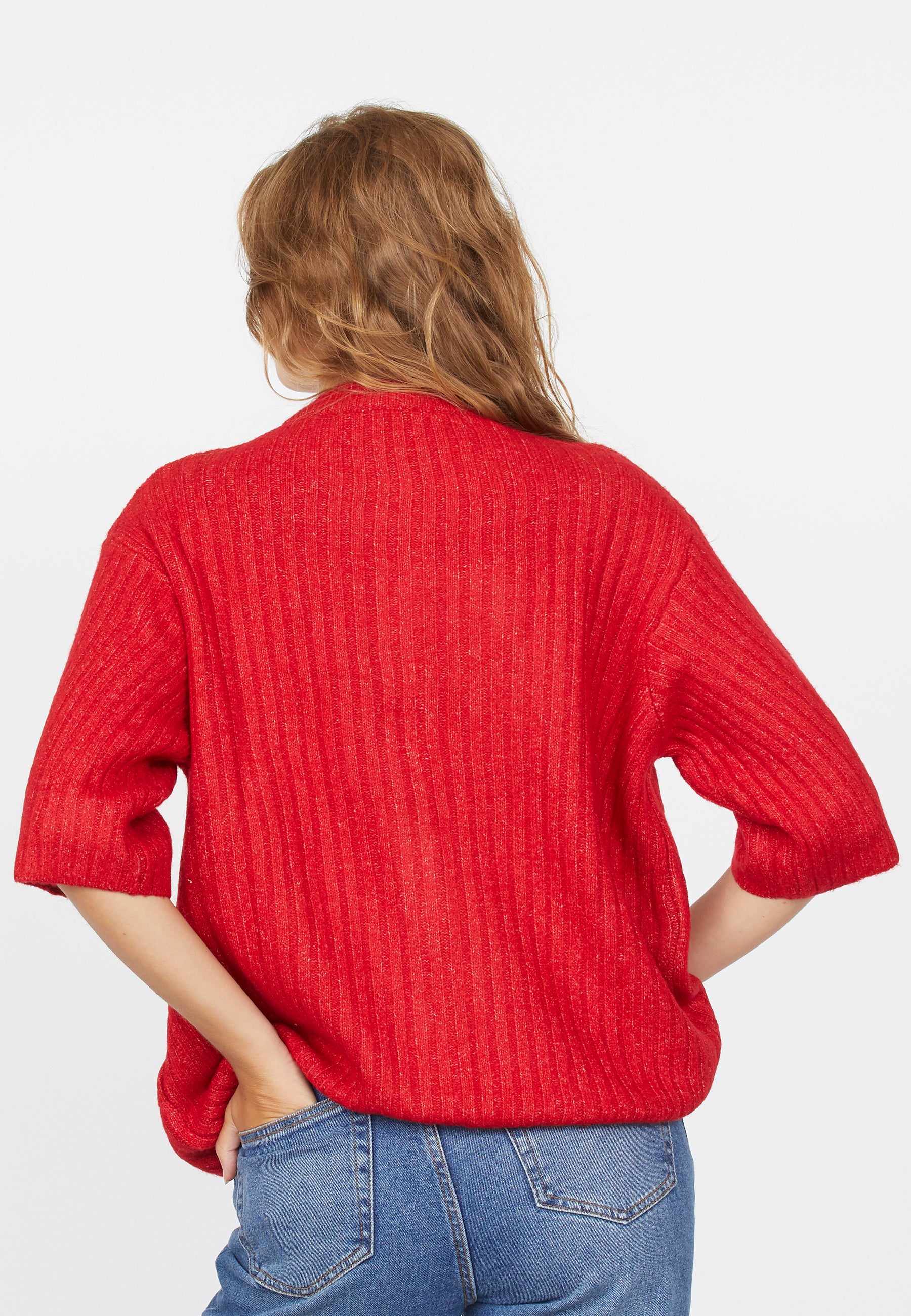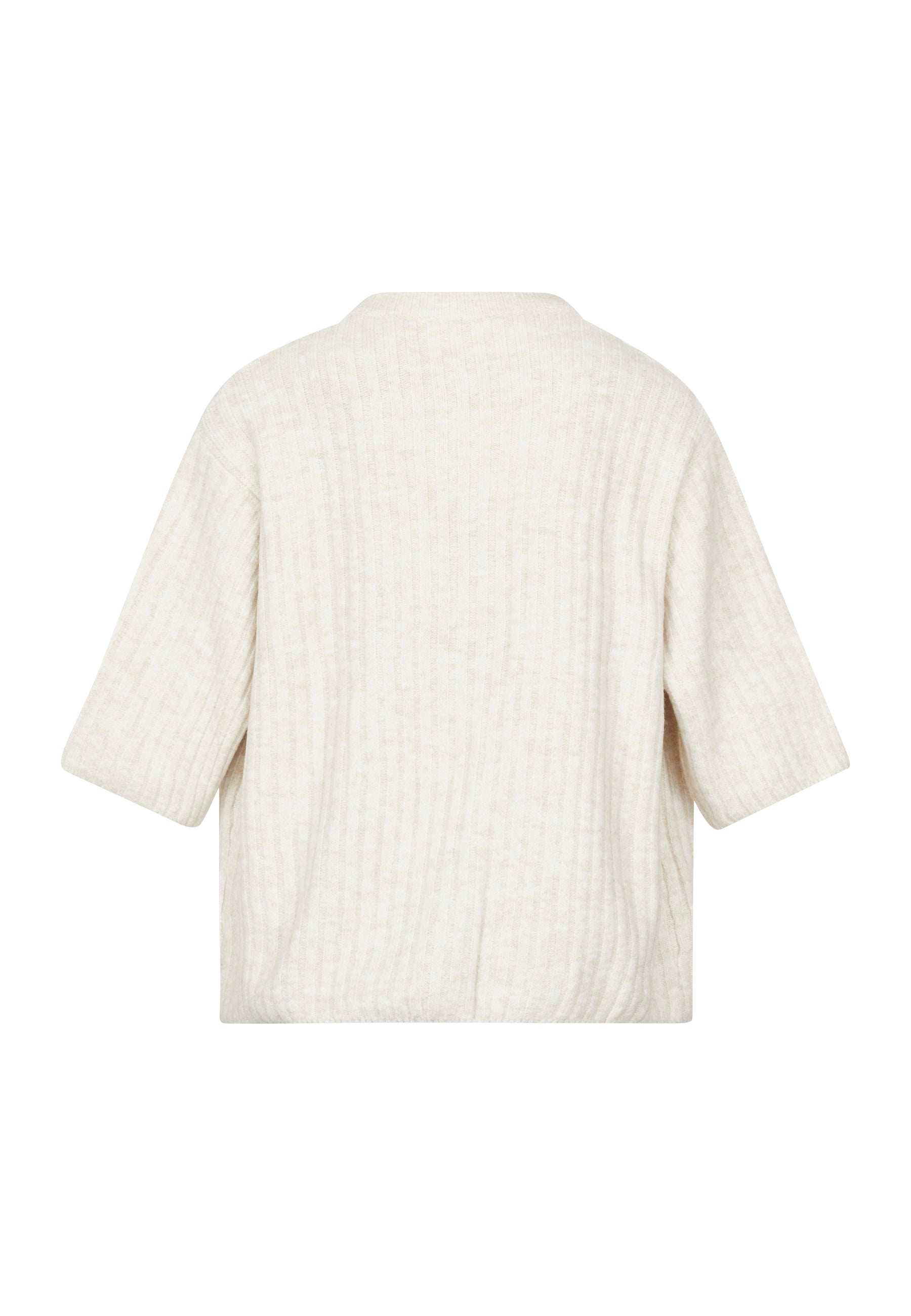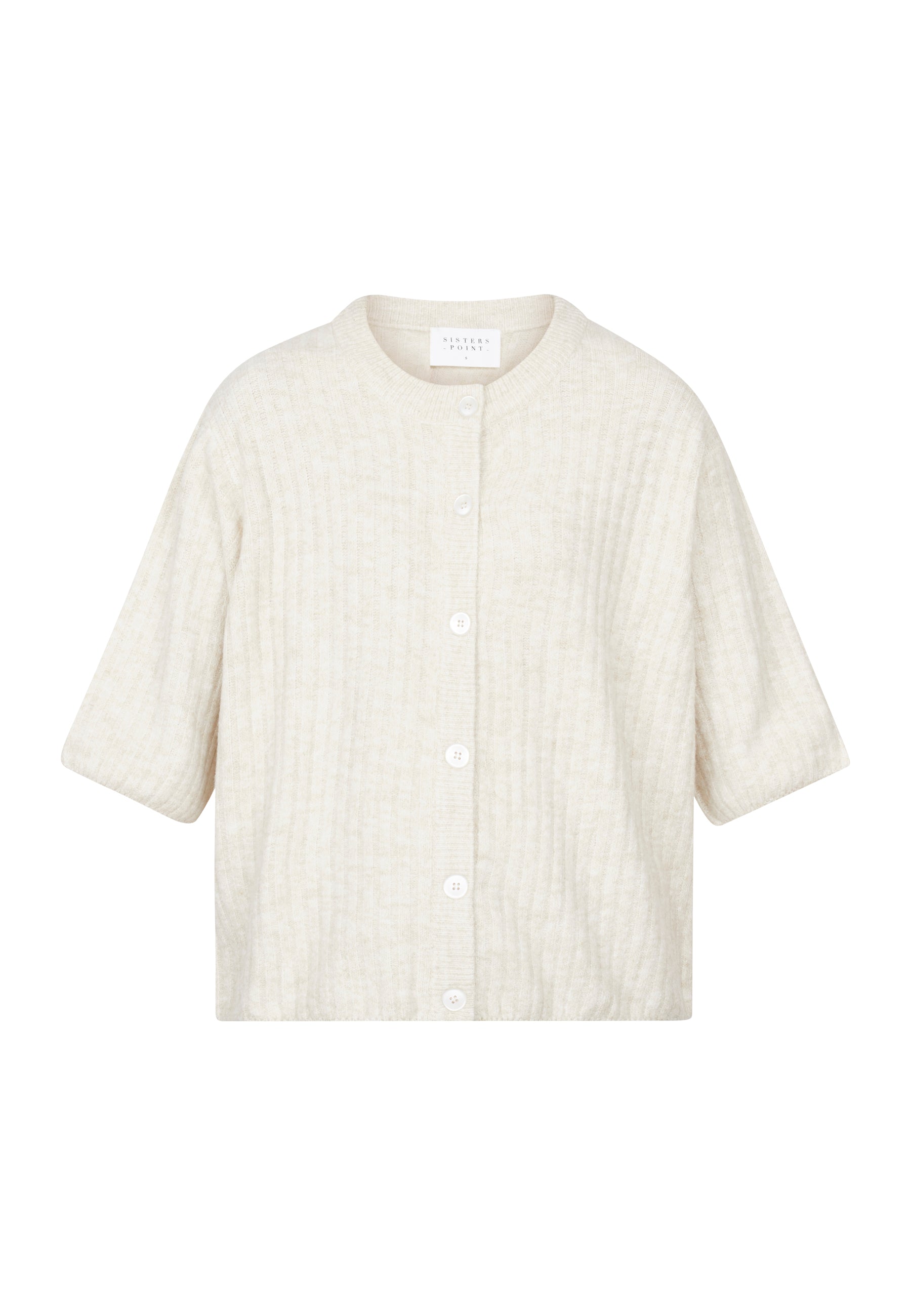 Holea er en løs og ribbet cardigan med 3/4 ermer. Cardiganen har knapper på fremsiden og en rund hals. Modellen har en størrelse S på.