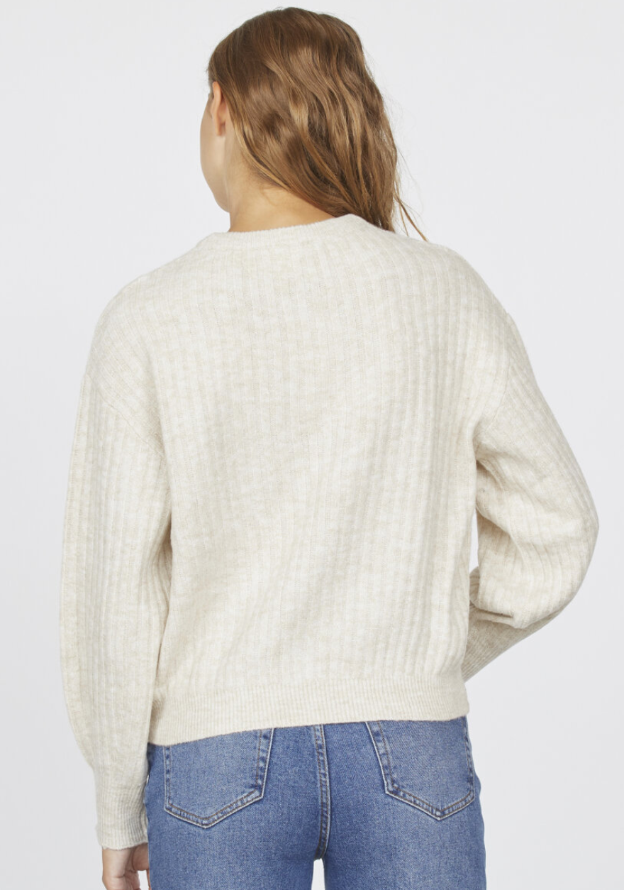 Holea er en ribbstrikket genser med en normal passform og rund hals. Utrolig myk og deilig strikket genser som ikke klør.