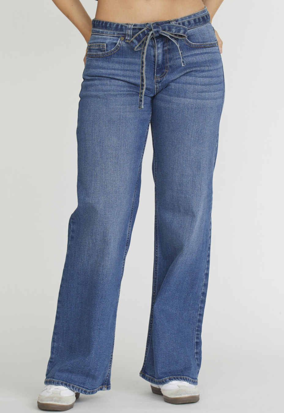 Onea er en denim bukse med brede ben, og har et denim belte i midjen. Dette belte kan taes av å på.