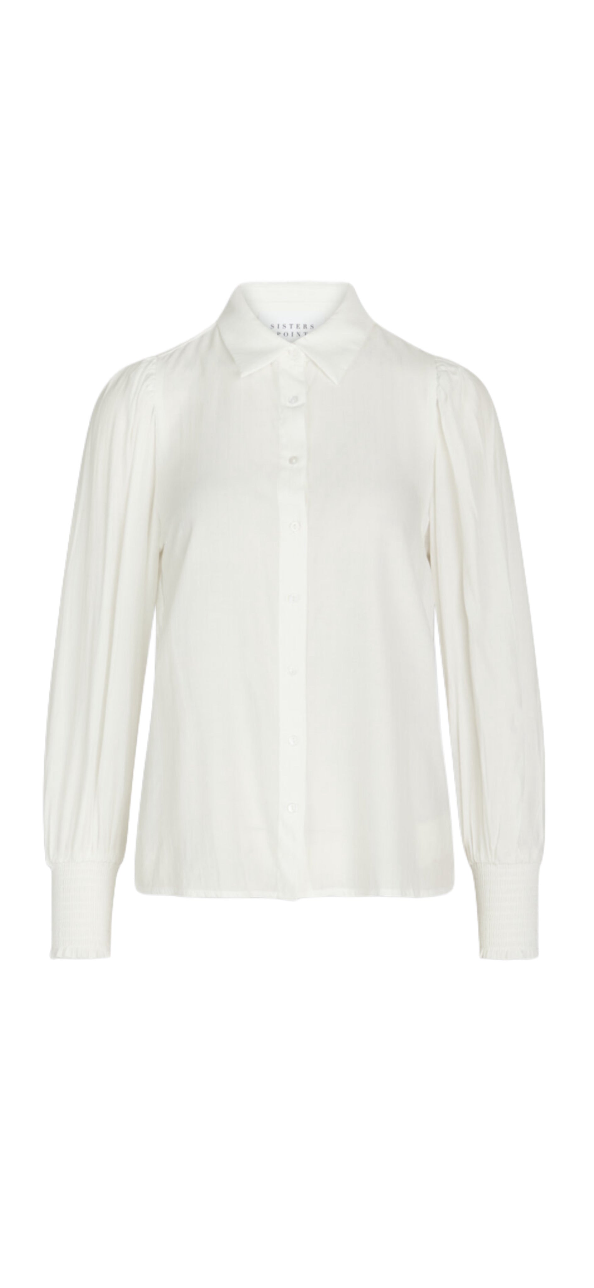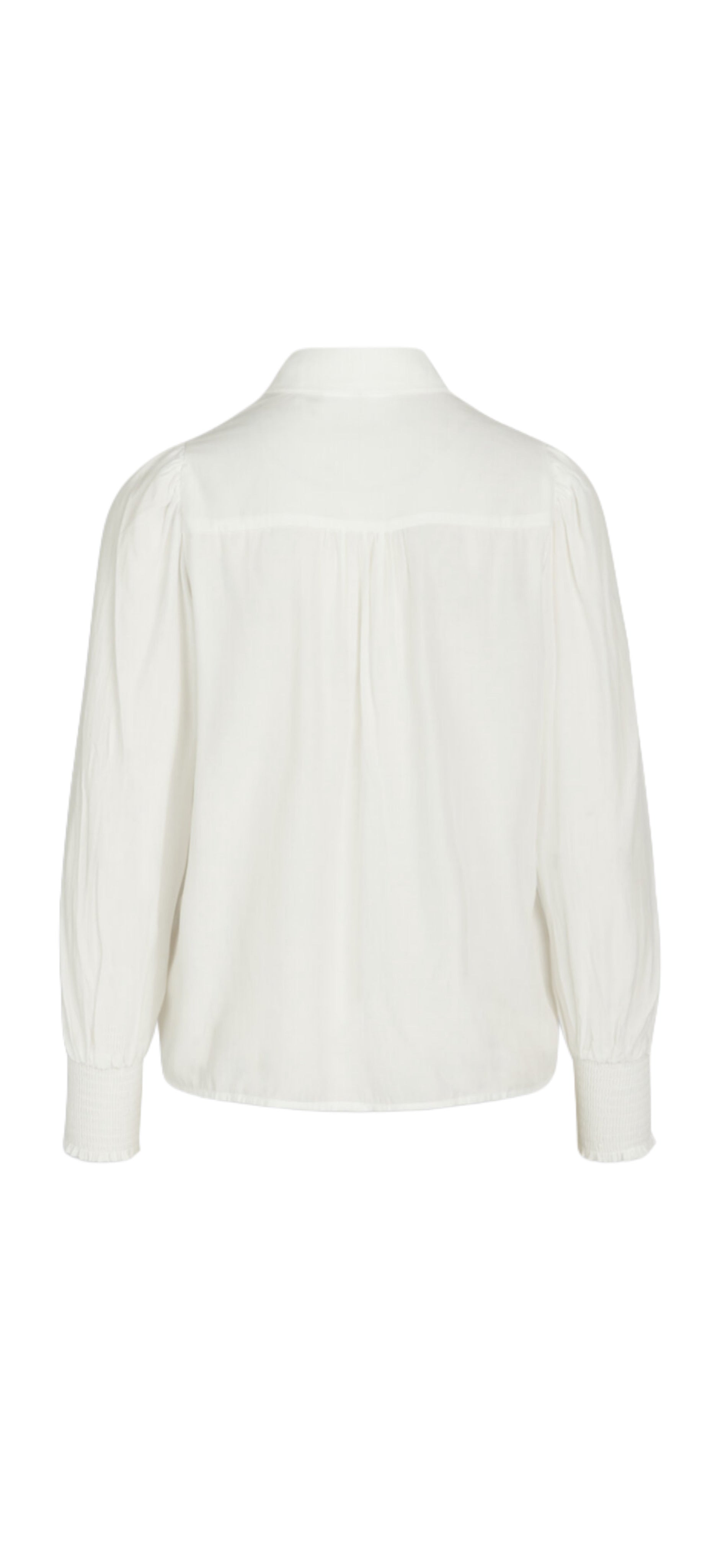Viada er en ensfarget bluse med tone-i-tone striper. Blusen har en feminin v-hals og lange ermer med puff.
