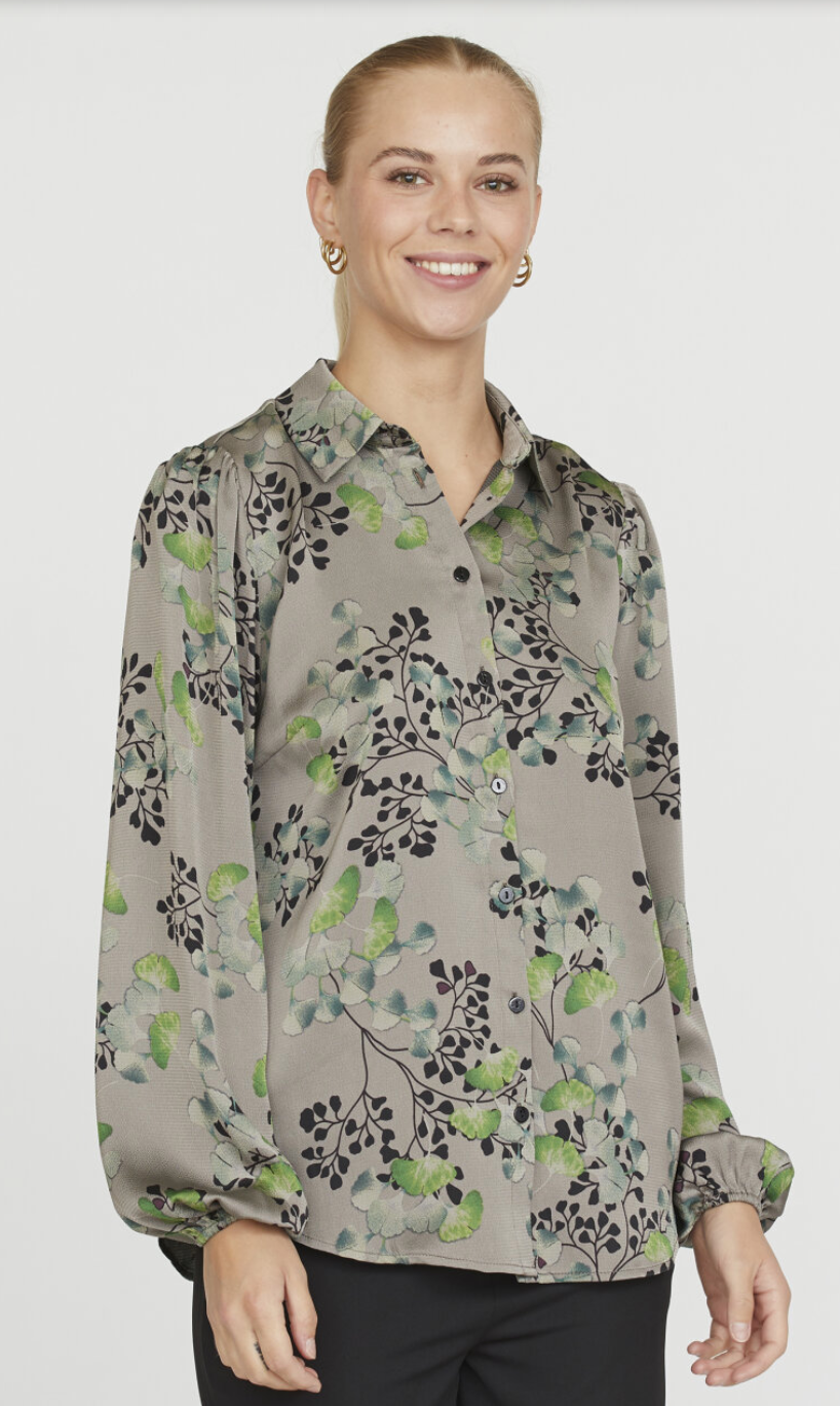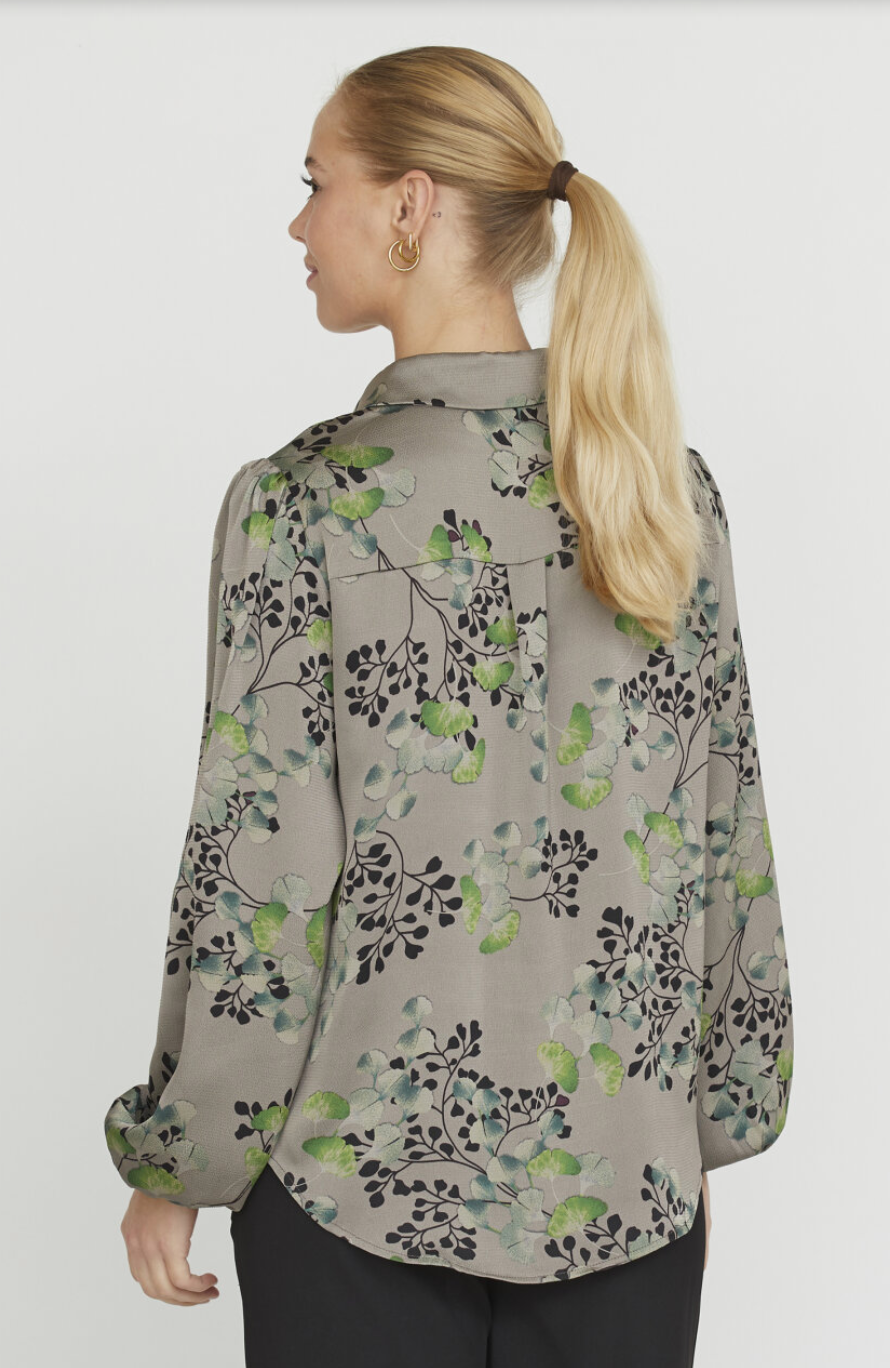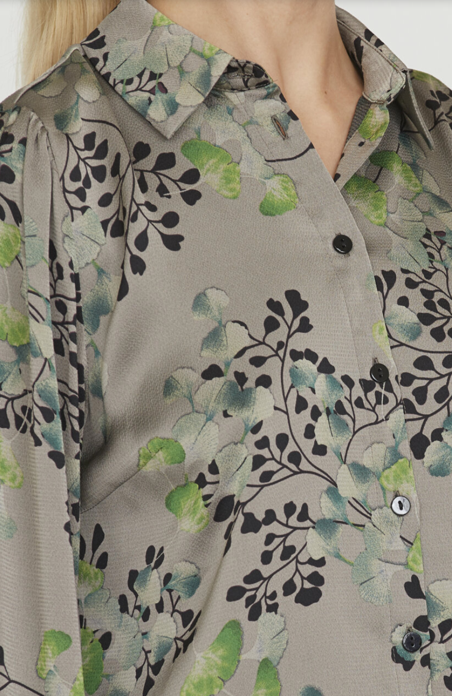 Ebbey er en blomsterprintet skjorte. Skjorten har en klassisk krage med knappelukning og lange luftige ermer. Passformen er normal. Modellen har en størrelse Small på.